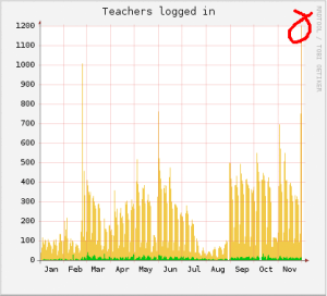 One day last February, for the first time ever, we had just over 1,000 teachers on Yacapaca in 24 hours. That record stood until yesterday, when at midnight we had had exactly 1,210 teachers visit.