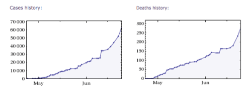 Notice how the two curves have about the same shape. The ratio of infections to deaths has remained approximately constant at 0.5%. Before you say “oh, that’s only in Mexico” let me give you the figures for the USA; 27,698 confirmed cases and 127 deaths. That’s 0.46%.
