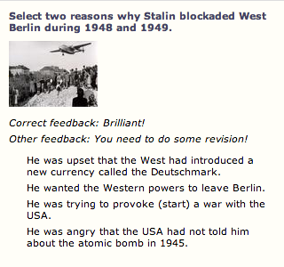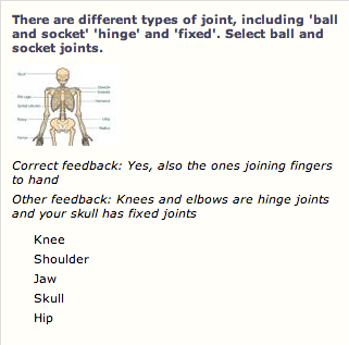 There is a lot to like in this. It’s referenced very intelligently to a diagram. The options are just one word. And note the feedback: it gives useful extra information without giving the game away.