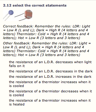 Oh, no, no, no! This is actually two entirely separate questions, one about an LDR and the other about a thermistor. When you unpack them, they are actually simple yes/no questions. I am strongly against obfuscating questions for the sake of it, both on aesthetic grounds and because it undermines the summative validity of the question.