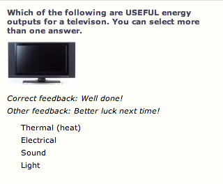 This pair of questions make a very interesting case study. You can see that the author has written one, then duplicated it and flipped it around, thus giving himself two bites at the same cherry. For almost no extra work, he has improved the summative value of his quiz. I wondered if ‘wasted energy’ contravened my “state positives” rule, but on balance I feel it is legitimate here.