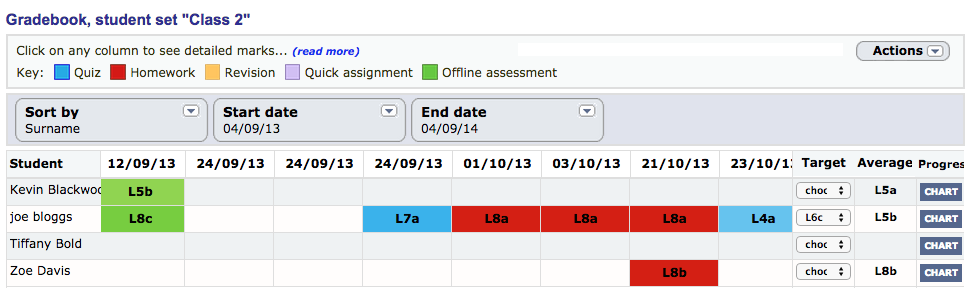 You might be interested to know that we’ve* abandoned our old spreadsheet system for tracking pupil progress at KS3 and instead are using the Yacapaca gradebook. We’ll be starting with the Computing baseline in the first lesson. In a few weeks we have a target setting INSET where we’ll enter that information into the gradebook. Come parents’ evening the chart and flightline will clearly show where students are at. Thanks for creating this and keep up the good work.