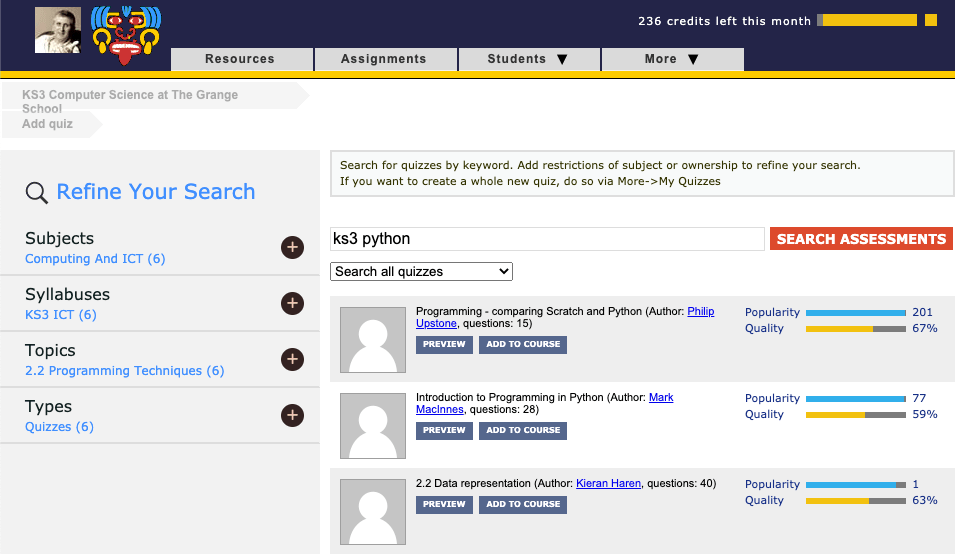 With well over 20,000 separate assessments on Yacapaca, many teachers want to collate a set to use for a particular course. This might be for personal use, or to share with your departmental team.