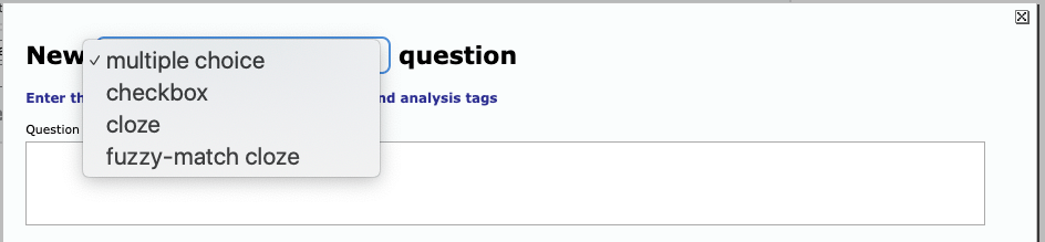 Open the dropdown and you will see the question-type choices. Currently these are: