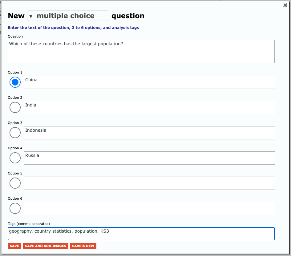 You can see I have added the first two option images. I could have also/alternatively added an image for the question.
