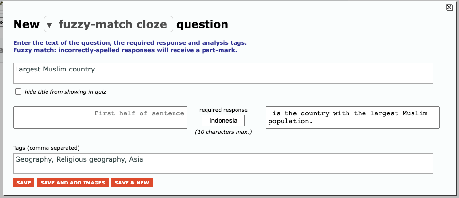 - You can include up to three acceptable responses, e.g. if you wish to allow for common misspellings.