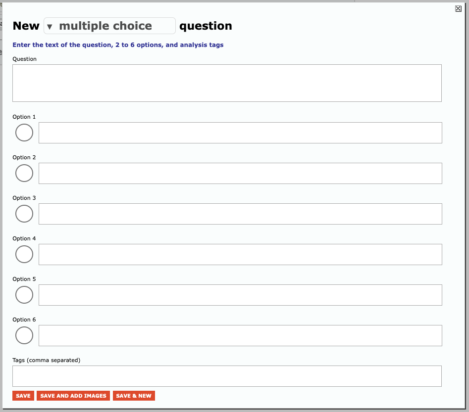 Suppose that you have already started to create a quiz, but you could not find existing suitable questions from the database. You have decided to create one or more brand new questions of your own. Here is where you will start: