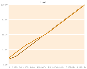 You can see the outcome in the graph: the new correlation is the orange line, the old is brown. The exercise largely validated the existing settings, the exceptions being levels 2 to 4 where our results had been a little optimistic.